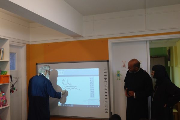 Κατά την επίσκεψή του, ο Σεβασμιώτατος κ. Δωρόθεος Β’ επιθεώρησε το νέο λεωφορείο, που αντικατέστησε το προ δεκαπενταετίας δωρηθέν από το ΠΙΙΕΤ, το οποίο προσέφεραν οι μεγάλοι ευεργέτες Αθανάσιος και Μαρίνα Μαρτίνου, ύστερα από αίτημα του Διευθυντή του Παιδικού Σταθμού, Πρωτοπρ. Φλαβιανού Αλμπέσκου.