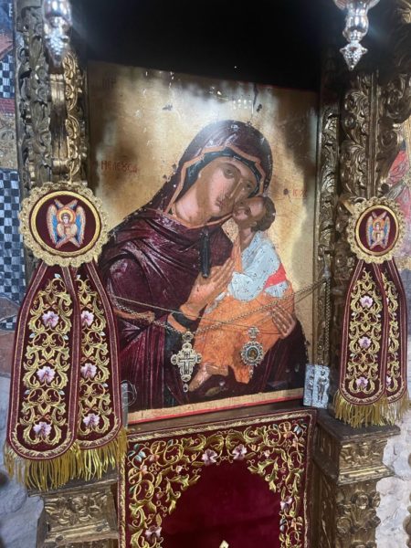 Ο Σεβασμιώτατος στο κήρυγμα του αναφέρθηκε στο πρόσωπο της Παναγίας μας και στα γεγονότα της παιδικής της ηλικίας και ευχήθηκε σε όλους η Κυρία Θεοτόκος να σκεπάζει τον καθένα ξεχωριστά και να τον οδηγεί στο δρόμο της Σωτηρίας. Ακολούθησε κέρασμα στο Αρχονταρίκι της Μονής και Εόρτιος Τράπεζα.