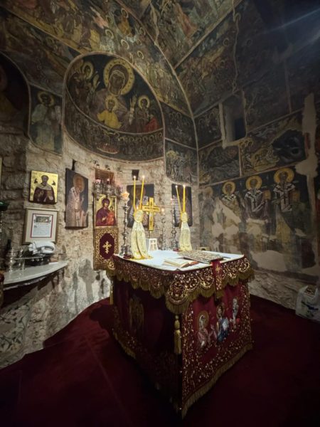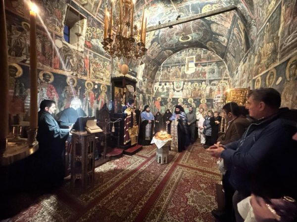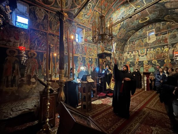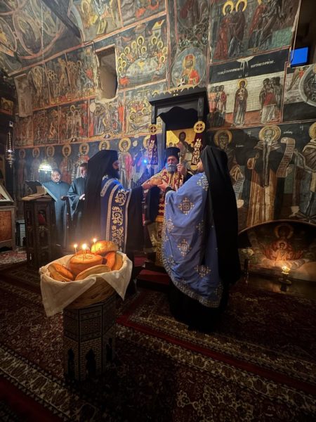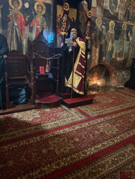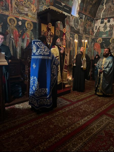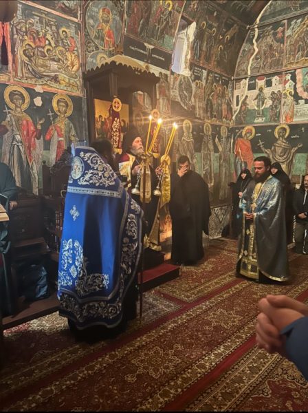 Του Πανηγυρικού Εσπερινού χοροστάτησε ο Σεβασμιώτατος Μητροπολίτης Ιωαννίνων κ. Μάξιμος πλαισιούμενος από τον Ηγούμενο και τους Πατέρες της Μονής.