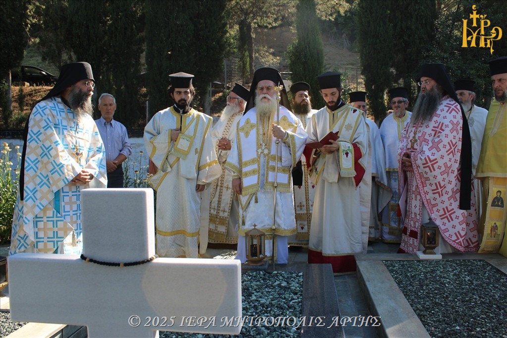 Της Θείας Λειτουργίας και του Ιερού Μνημοσύνου προεξήρχε ο Σεβασμιώτατος Μητροπολίτης Άρτης κ. Καλλίνικος, με τη συμμετοχή Κληρικών της περιοχής και πιστών που προσήλθαν για να προσευχηθούν υπέρ αναπαύσεως της μακαρίας ψυχής της αοιδίμου Ηγουμένης.