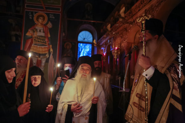 Μέσα στην κατάνυξη και στην συγκίνηση της Ακολουθίας, όλοι οι παρευρισκόμενοι Πατέρες, οι μοχαχοί, οι μοναχές και ο πιστός λαός, ένιωσαν το απόγειο της πνευματικής χαράς, όταν ο Σεβασμιώτατος έδωσε την λαμπάδα στην Μοναχή Χρυσοστόμη και ζήτησε κατ’ εξαίρεσιν να ψαλεί το Δοξαστικό «Αναστάσεως ημέρα…», ενώ το Καθολικό της ιστορικής Μονής έλαμψε από το φως των κεριών, τα οποία κρατούσαν όλοι οι παρευρισκόμενοι, δίνοντας το αίσθημα της νύκτας της Αναστάσεως του Κυρίου.