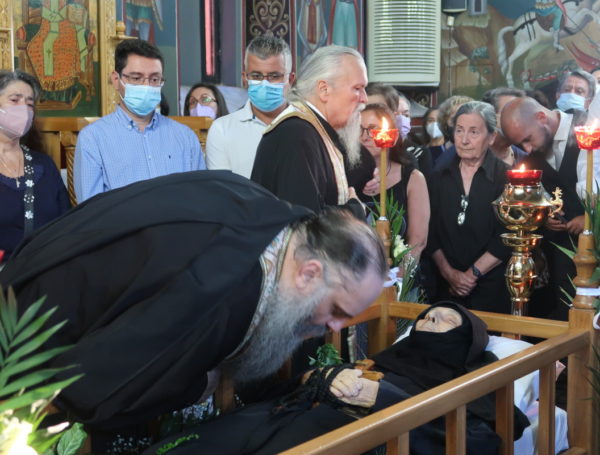 Την Εξόδιο Ακολουθία τέλεσε ο Σεβασμιώτατος Μητροπολίτης Φθιώτιδος κ. Συμεών στο Καθολικό της Ιεράς Μονής Αγίου Γεωργίου Μαλεσίνας, παρουσία Καθηγουμένων, κληρικών, μοναζουσών και πλήθους πιστών, μεταξύ των οποίων και του Δημάρχου Λοκρών κ. Αθανασίου Ζεκεντέ, οι οποίοι είχαν κατακλύσει όλους τους χώρους της Μονής για να ασπασθούν το χέρι της μακαριστής μοναχής Χριστοφόρας και να την αποχαιρετίσουν με μια προσευχή και ένα λουλούδι, που τόσο αγαπούσε.
