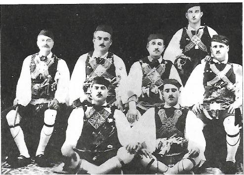 Αρματωμένοι Πανηγυριστές με την Αη Συμιώτικη φορεσιά τους, έτος 1935