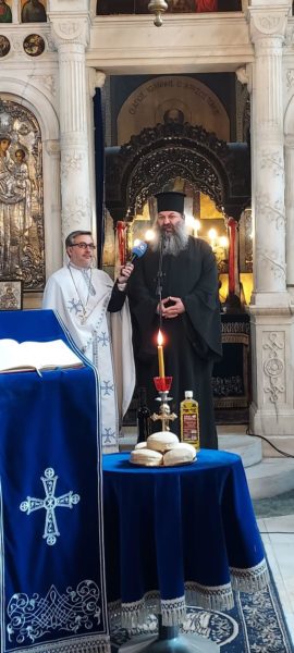 Η έλευση του Αποστολικού Λειψάνου πραγματοποιήθηκε εξ’ αφορμής της ετήσιας πανηγύρεως της Ιεράς Μονής Παντοκράτορος, επί τη Κυριακή των Μυροφόρων , κατά την οποία τελέστηκε υπαίθριο Αρχιερατικό Συλλείτουργο προεξάρχοντος του Σεβασμιωτάτου Μητροπολίτου Κίτρους, Κατερίνης και Πλαταμώνος κ. Γεωργίου, ο οποίος κόμισε προς προσκύνησιν τεμάχιο Ιερού Λειψάνου της Αγίας Αικατερίνης, και συλλειτουργούντων 7 Αρχιερέων της Ρουμανικής Εκκλησίας.