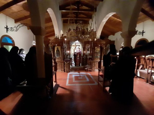 Στο τέλος της Ακολουθίας ο Σεβασμιώτατος ευχήθηκε στην οσιολογιωτάτη Γερόντισσα Ευπραξία και τις αδελφές της Ιεράς Μονής με την ευκαιρία της εορτής των Χριστουγέννων.