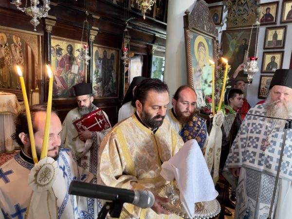 Στη Θεία Λειτουργία του Σαββάτου 9 Ιουλίου, που τελέστηκε στο Καθολικό της Ιεράς Μονής, συνιερούργησαν ο Σεβασμιώτατος Μητροπολίτης Νέας Κρήνης και Καλαμαριάς κ. Ιουστίνος και ο Σεβασμιώτατος Μητροπολίτης Θηβών, Λεβαδείας και Αυλίδος κ. Γεώργιος, ο οποίος και τέλεσε τη χειροτονία, πλαισιούμενοι από ιερείς, συγγενείς και φίλους του νέου Διακόνου.