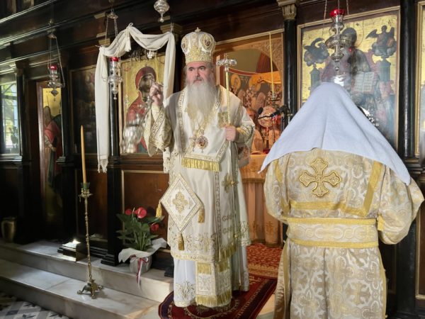 Στη Θεία Λειτουργία του Σαββάτου 9 Ιουλίου, που τελέστηκε στο Καθολικό της Ιεράς Μονής, συνιερούργησαν ο Σεβασμιώτατος Μητροπολίτης Νέας Κρήνης και Καλαμαριάς κ. Ιουστίνος και ο Σεβασμιώτατος Μητροπολίτης Θηβών, Λεβαδείας και Αυλίδος κ. Γεώργιος, ο οποίος και τέλεσε τη χειροτονία, πλαισιούμενοι από ιερείς, συγγενείς και φίλους του νέου Διακόνου.