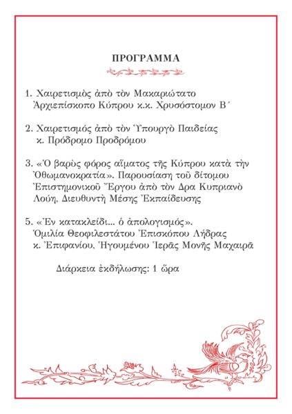 Η εκδήλωση θα γίνει την Τετάρτη 19 Οκτωβρίου, στις 6:30 μ.μ. στην αίθουσα τελετών του Πανεπιστημίου Κύπρου στην οδό Καλλιπόλεως.