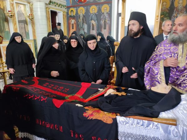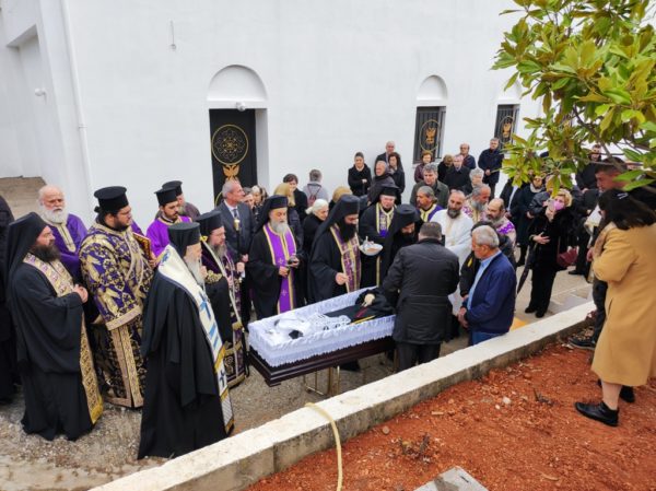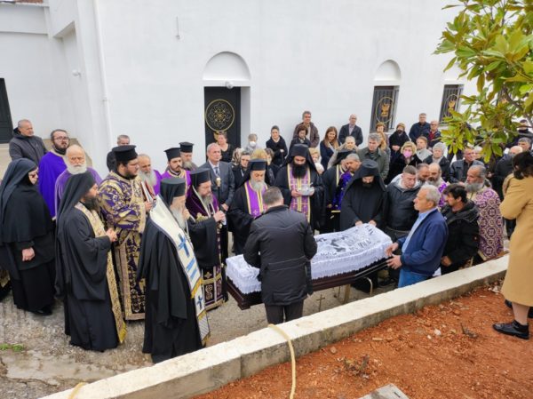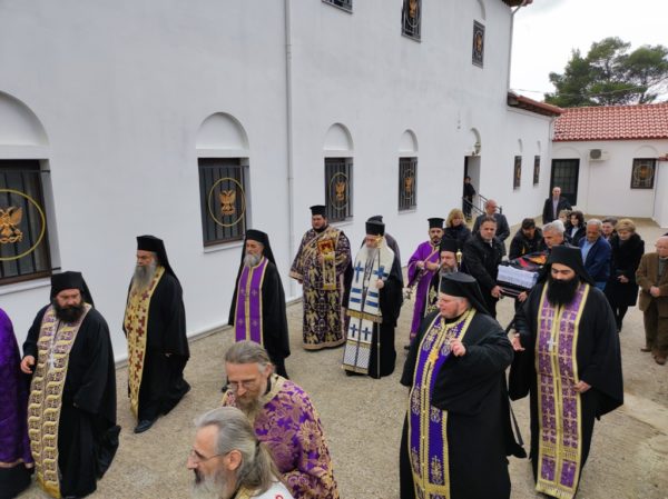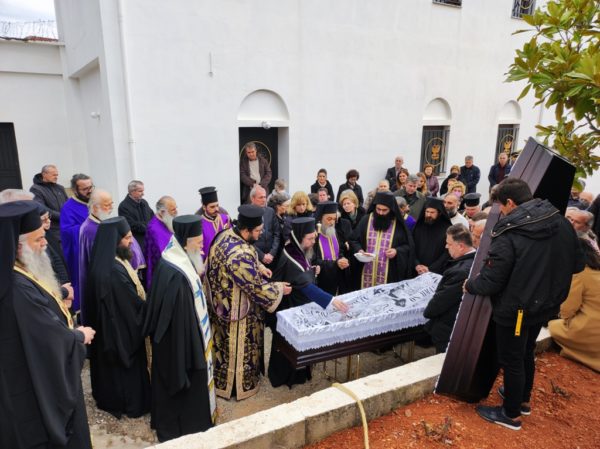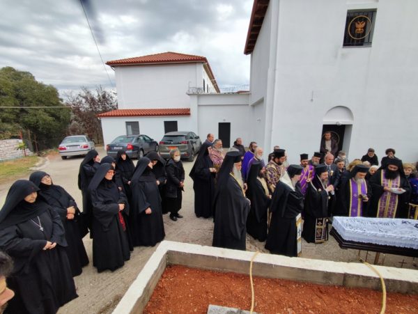 Ευχήθηκε η πολύτιμη παρακαταθήκη και το σπουδαίο έργο που αφήνει στην Ιερά Μονή να βρει συνεχιστές και υποσχέθηκε να εργαστεί ο ίδιος, για να πραγματοποιηθεί το όραμά της για την ανέγερση του νέου Ιερού Ναού του Αγίου Κοσμά του Αιτωλού, ώστε η ψυχή της να χαίρεται, να ευφραίνεται και να πρεσβεύει για την Αδελφότητά της και για ολόκληρη την τοπική Εκκλησία.