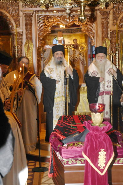 Το αγιασμένο χώμα της Αχαικής γης, η μάνδρα της Μονής της Ελεούσης, είπε κλείνοντας την ομιλία του ο Σεβασμιώτατος, θα κρύψει φιλόστοργα το σκήνωμά της, ως και τους πόθους της για τις μαρτυρικές πατρίδες.