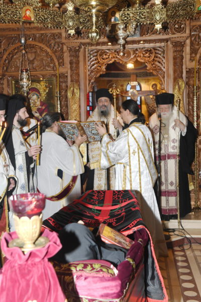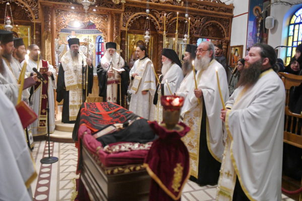 Της Εξοδίου Ακολουθίας προέστη ο Σεβασμιώτατος Μητροπολίτης Πατρών κ. Χρυσόστομος, ο οποίος εκπροσώπησε και τον Παναγιώτατο Οικουμενικό Πατριάρχη κ.κ. Βαρθολομαίο, του οποίου τις συλλυπητήριες ευχές μετέφερε στην Αδελφότητα της Ιεράς Μονής, καθώς και στους κατά σάρκα συγγενείς της μεταστάσης.