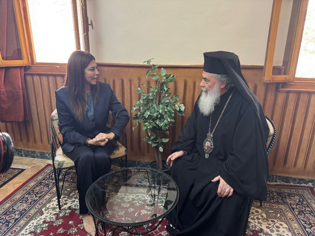 Επί πλέον, ο Μακαριώτατος είχε συνάντηση με τον Πρωθυπουργό της Ελληνικής Δημοκρατίας κ. Κυριακό Μητσοτάκη, με τον οποίο είχε θερμή και γόνιμη συνομιλία περί ζητημάτων που αφορούν το Πατριαρχείο Ιεροσολύμω και την εν γένει κατάσταση της Μέσης Ανατολής. Ο Μακαριώτατος είχε συνάντηση επίσης με την κ. Αλεξάνδρα Παπαδοπούλου, Υφυπουργό Εξωτερικών, με την κ. Σοφία Ζαχαράκη, Υπουργό Παιδείας, Θρησκευμάτων και Αθλητισμού και με τον κ. Γεώργιο Καλαντζή, Γενικό Γραμματέα Θρησκευμάτων για θέματα που αφορούν την πνευματική, πολιτιστική, φιλανθρωπική και εθνική αποστολή του Πατριαρχείου Ιεροσολύμων.