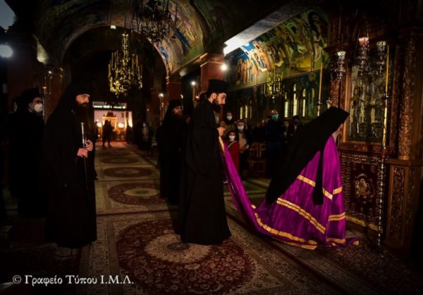 Προ της Απολύσεως σύντομο χαιρετισμό απεύθυνε ο Θεοφιλέστατος Επίσκοπος Μαλάουι κ. Φώτιος, ο οποίος με συγκίνηση αναφέρθηκε στην μνήμη του π. Κυρίλλου και την συμβολή των Πατέρων της Μονής για την ανέγερση του Ι.Ν. Γεννήσεως του Κυρίου στο Μαλάουι, ενώ τέλος οι Ιερές Ακολουθίες περατώθηκαν με την φήμη της Α.Θ.Π. του Οικουμενικού Πατριάρχου κ.κ. Βαρθολομαίου, την φήμη του Οικείου Επισκόπου και τον Πολυχρονισμό του νέου Ηγουμένου, Αρχιμ. π. Αντωνίου Κοτζαμάνη.