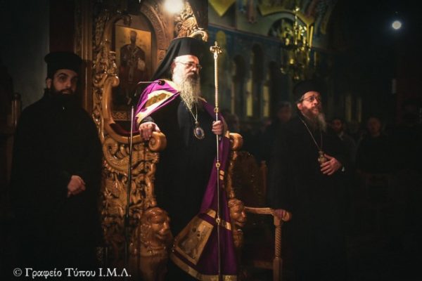 Προσφωνώντας με θερμούς λόγους ο Σεβασμιώτατος τον ενθρονισθέντα αφού αναφέρθηκε στην μακραίωνη ιστορία του Μοναχισμού και στην συμβολή του στην Ορθοδοξία και στον Ελληνικό πολιτισμό, έκανε λόγο περί του προσώπου του νέου Ηγουμένου, ο οποίος αποτελεί τέκνο υπακοής του Ιερού Ησυχαστηρίου και γνώστης των πνευματικών αναγκών των αδελφών του, προτρέποντας τον, να ασκεί τα υψηλά καθήκοντα του με ζήλο και αυτοθυσιαστική προσφορά προς τους συμμοναστούς του και προς τους προσκυνητές οι οποίοι αναζητούν πνευματική όαση και παρηγοριά σε αυτό, ενώ καταλήγοντας τον ευχήθηκε η διακονία του αυτή να είναι πολύκαρπος, συνεχίζοντας παρόλο τους δύσκολους καιρούς που διερχόμαστε, το πλούσιο και πολυσχιδές πνευματικό έργο του Γέροντος του π. Κυρίλλου.