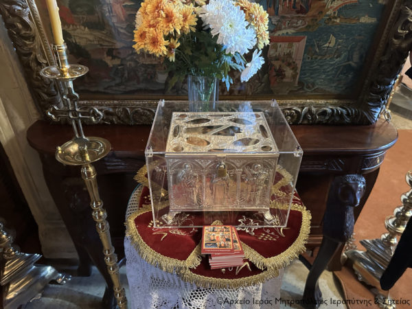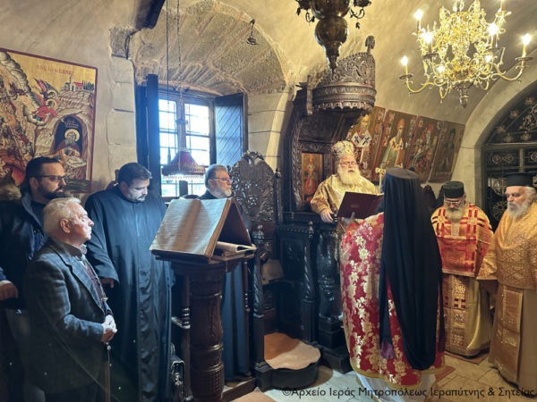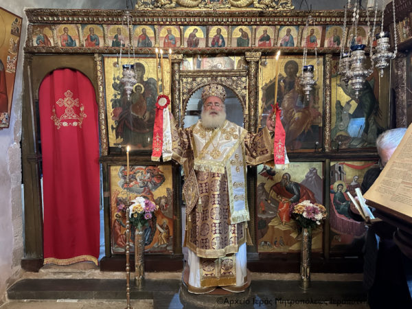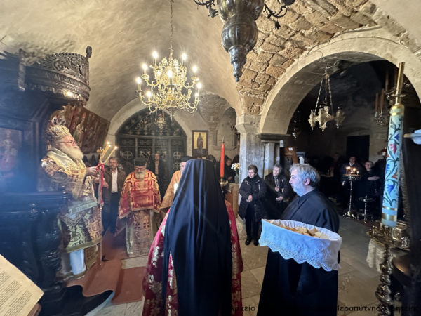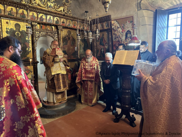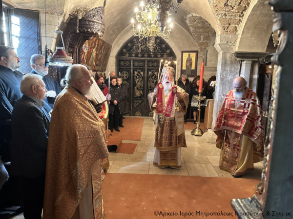 Στην Αρχιερατική Θεία Λειτουργία, κατά την οποία είχε τεθεί προς προσκύνηση και ενίσχυση των παρισταμένων πιστών το χαριτόβρυτο ιερό λείψανο της Αγίας Αναστασίας της Φαρμακολυτρίας, έλαβαν μέρος ο Πανοσιολ. Ηγούμενος της Μονής Αρχιμανδρίτης Αμβρόσιος Σκαρβέλης, ο Παν/τος Προηγούμενος Αρχιμανδρίτης Φιλόθεος Σπανουδάκης, ο Συνταξιούχος Εφημέριος Αιδ/τος Σκευοφύλακας π. Γεώργιος Τσικαλάκης και ο Διάκονος Θεμιστοκλής Μπεϊνάς.