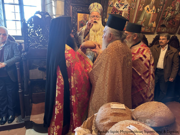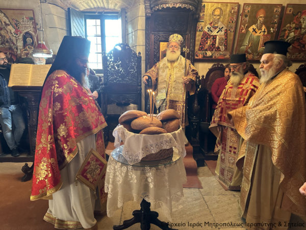 Την Θεία Λειτουργία τέλεσε ο Σεβασμιώτατος Μητροπολίτης Ιεραπύτνης και Σητείας κ. Κύριλλος, ο οποίος στο τέλος ευλόγησε τους προσφερόμενους άρτους.