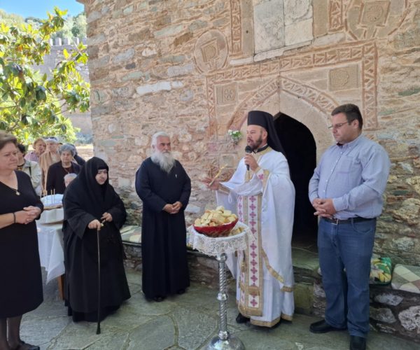 Επίσης το αναλόγιο διηκόνησαν ο Πρωτοψάλτης της Ιεράς Μονής κ. Χαράλαμπος Καρακατσάνης με τον Ιεροψάλτη Ιερού Ναού Αγίου Νικολάου Ερέτριας κ. Δημήτριο Πετρογιάννη μετά της φιλόξενης παραχώρησης της Ηγουμένης Μακαρίας και της συνοδείας της.