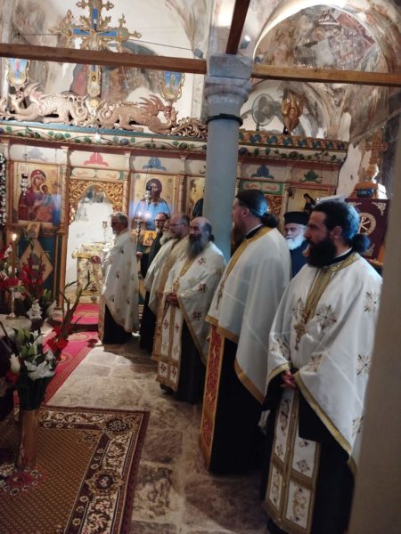 Την κυριώνυμο ημέρα της εορτής στο καθολικό της ιεράς μονής τελέσθηκε Αρχιερατικό Συλλείτουργο προεξάρχοντος του Σεβασμιωτάτου Μητροπολίτου Καρυστίας και Σκύρου κ. Σεραφείμ και συνιερουργούντος του Σεβασμιωτάτου Μητροπολίτου Ειρηνουπόλεως κ. Νικάνδρου τους οποίους πλαισίωσαν ο Πρωτοσύγκελλος Πανοσ Αρχιμ Νικόδημος Πόγκας οι αδελφοί της ιεράς μονής και ιερείς της μητροπολιτικής επαρχίας.