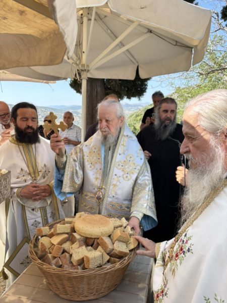Μετά το πέρας της ευχαριστιακής συνάξεως ο Σεβασμιώτατος Μητροπολίτης κ. Σεραφείμ ευλόγησε τους προσφερθέντες άρτους και την εκ της ιεράς μονής πανηγυρική δοχή όπου απήθυνε τις πατρικές και εόρτιες ευχες του προς όλους τους προσκυνητές πιστούς που τίμησαν την εορτή.