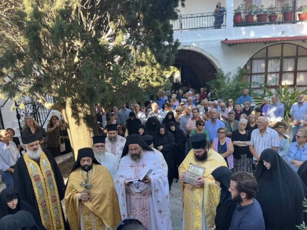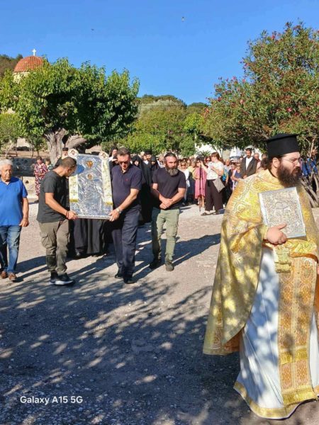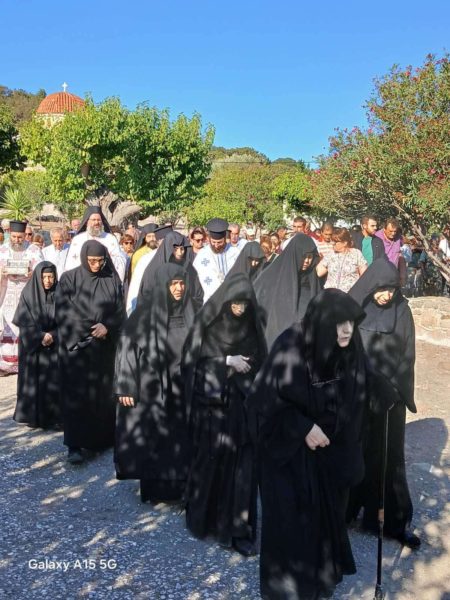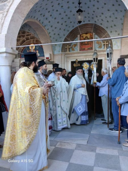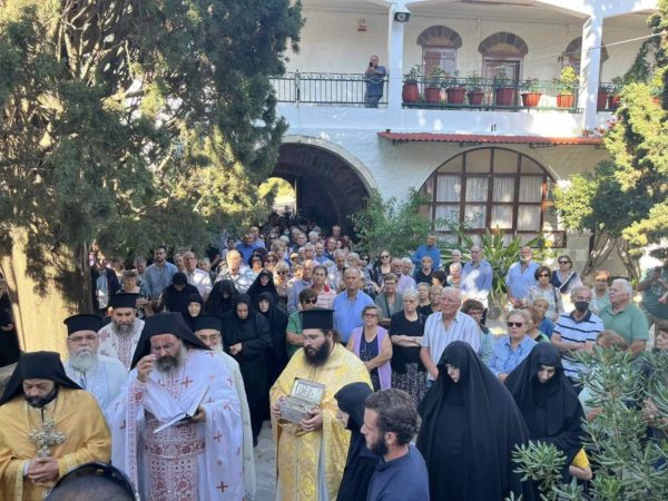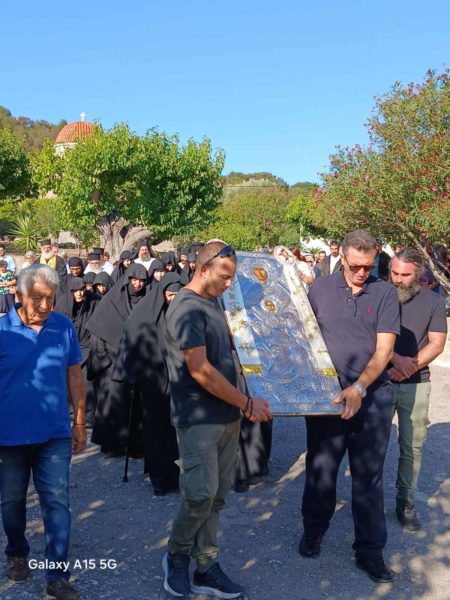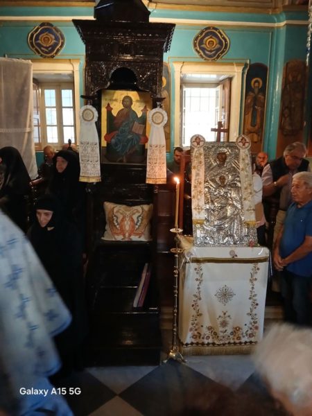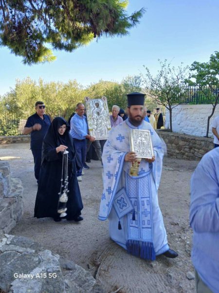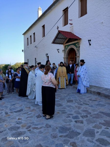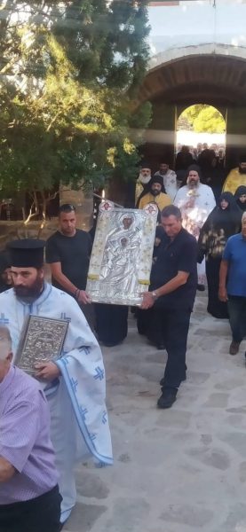 Με την ευλογία του Σεβασμιωτάτου Μητροπολίτη Ύδρας, Σπετσών και Αιγίνης κ. Εφραίμ τελέσθηκε σήμερα Πέμπτη 26 Σεπτεμβρίου 2024, ημέρα μνήμης του Αγίου ενδόξου Αποστόλου και Ευαγγελιστού Ιωάννου του Θεολόγου στην Ιερά Μονή Παναγίας Χρυσολεοντίσσης με την συμμετοχή των Πατέρων της Νήσου των μοναχών από τα μοναστήρια της Αιγίνης και πλήθους κόσμου η Θεία Λειτουργία και λιτανεία της Θαυματουργού Ιεράς Εικόνος της Παναγίας μας, (πέριξ της Μονής) κατά την οποία αναπέμφθηκαν ικετήριες ευχές για την λύση της ανομβρίας.