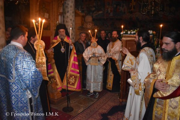 Την παραμονή της εορτής, τελέσθηκε ο Μέγας Αρχιερατικός Εσπερινός, χοροστατούντος του Σεβ. Μητροπολίτου Θεσσαλιώτιδος κ. Τιμοθέου.