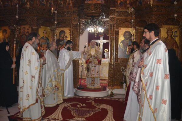 Το πρωί της εορτής ο Σεβασμιώτατος Ποιμενάρχης κ. Χρυσόστομος χοροστάτησε στην ακολουθία του Όρθρου και εν συνεχεία τέλεσε την Θεία Λειτουργία πλαισιωμένος υπό Ιερέων και Διακόνων της Μητροπόλεως.