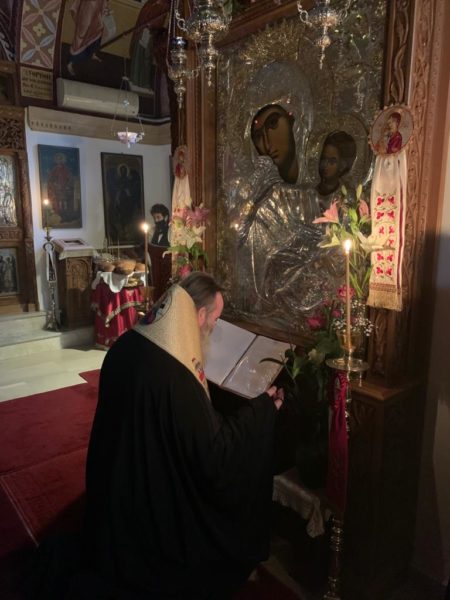 Ο Σεβασμιώτατος Μητροπολίτης Κισάμου και Σελίνου κ. Αμφιλόχιος τέλεσε, αφ΄ εσπέρας, νυκτερινή Θεία Λειτουργία, την δε κυριώνυμο ημέρα την Ιερά Παράκληση Της. Στον σύντομο χαιρετισμό του σημείωσε: