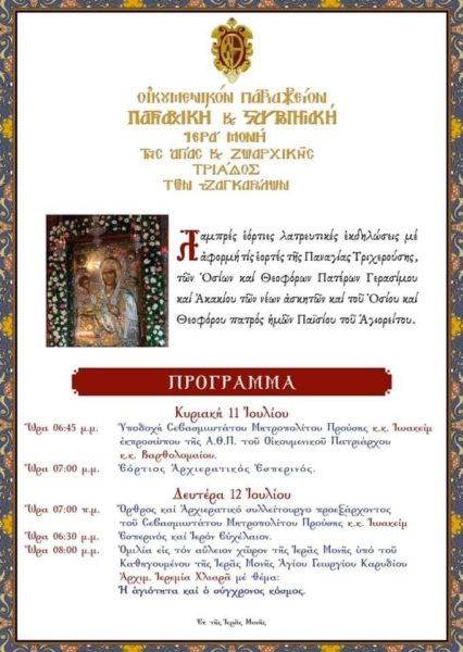 Λαμπρές εόρτιες λατρευτικές εκδηλώσεις με αφορμή τις εορτές της Παναγίας Τριχερούσης, των Οσίων και Θεοφόρων Πατέρων Γερασίμου και Ακακίου των νέων ασκητών και του Οσίου και Θεοφόρου πατρός ημών Παϊσίου του Αγιορείτου .