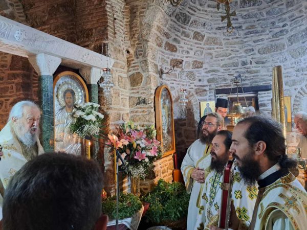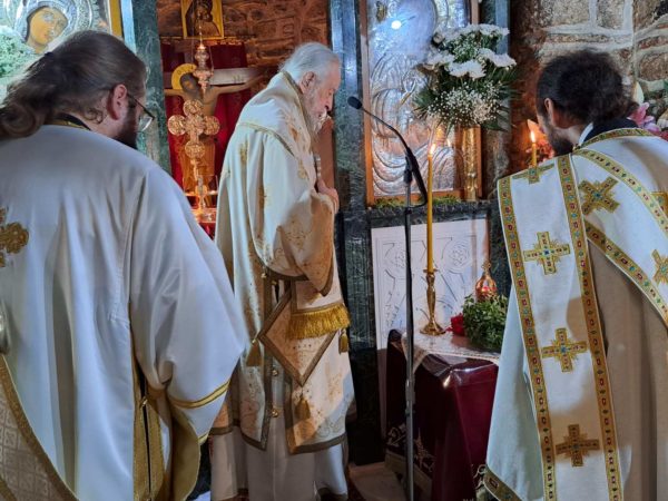 Στην Θεία Ευχαριστία συμπροσευχηθήκαν η Ηγουμένη της Ιεράς Μονής Θεολογία Μοναχή μετά της συνοδείας της μοναστικής αδελφότητος και πολλοί πιστοί.