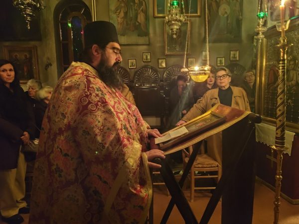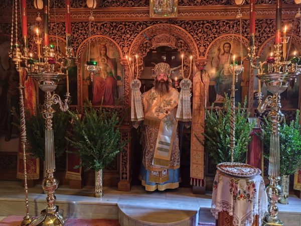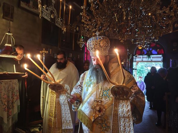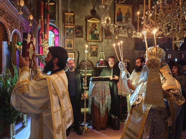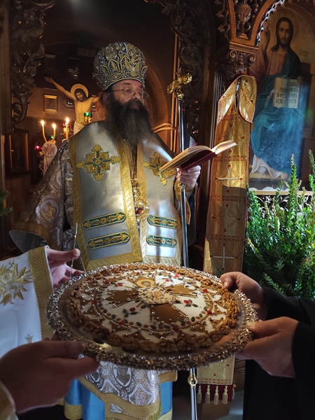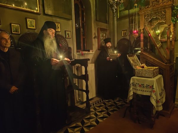 Το εσπέρας του Σαββάτου εψάλη ο Μέγας Εσπερινός κατά την Μοναστηριακή τάξη και το πρωΐ της Κυριακής από τις 04.00’έως της 10.15’ π.μ. το Μεσονυκτικόν, ο Όρθρος, η Α’ Ώρα και η Θ. Λειτουργία. Στην Θ. Λειτουργία προέστη ο Ηγούμενος της Ι. Μονής Θεοφιλέστατος Επίσκοπος Κεγχρεών κ. Αγάπιος και μαζί του συλλειτούργησαν ο Πανοσ/τος Ιερομόναχος π. Λογγίνος Αρχόντης, αδελφός της Ι. Μονής και οι Διάκονοι π. Χρήστος Χίλιας και π. Άγγελος Σαλάτας, ενώ έψαλαν ο Πανοσ/τος Σύγκελλος – Οικονόμος π. Πρόδρομος Αντωνίου, αδελφός της Ι. Μονής και ο κ. Παναγιώτης Καρμόγιαννης Συμβολαιογράφος Ξυλοκάστρου.