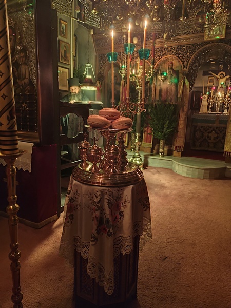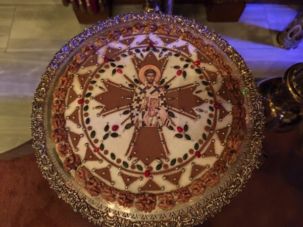 Στο τέλος της Θ. Λειτουργίας «διαβάστηκε» το κόλλυβο του Αγίου, που διενεμήθη στους Πιστούς μαζί με το «κέρασμα» της Πανηγύρεως εκ μέρους της Ι. Μονής. Στην Θ. Λειτουργία παρέστησαν συμπροσευχόμενοι οι κ. Γεώργιος Πετρίτσης, Περιφερειακός Σύμβουλος, και κ. Αναστάσιος Ταγαράς, Αντιπρόεδρος Δημοτικού Συμβουλίου του Δήμου Κορινθίων.