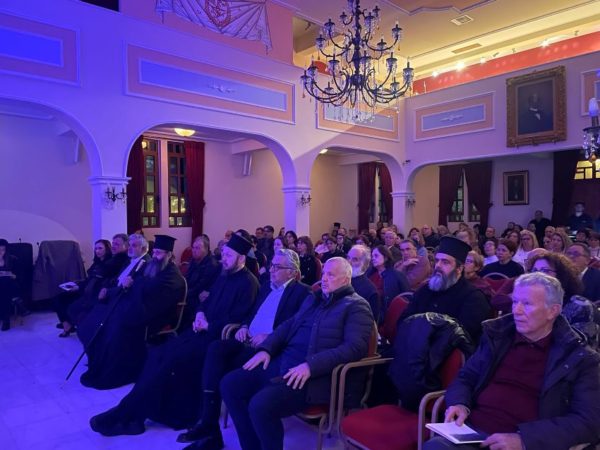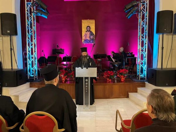 Μετά το Κτιτορικό Μνημόσυνο στην Ι. Μονή Αναστάσεως Χριστού Λουτρακίου ο Θεοφιλέστατος Πρωτοσύγκελλος της Ι. Μητροπόλεως μας κ. Αγάπιος παρέστη στην Μουσική εκδήλωση, που πραγματοποιήθηκε στην «ΚΡΟΚΙΔΕΙΟ ΑΙΘΟΥΣΑ» της Ι. Μητροπόλεώς μας, με την έμπνευση, μέριμνα και φροντίδα του Ιστορικού-Λαογραφικού Μουσείου Κορίνθου, με την ευκαιρία της επερχόμενης εορτής των Χριστουγέννων και θέμα: «Ο ΘΕΟΣ ΑΓΑΠΗ ΕΣΤΙ – 24 ΠΡΟΣΕΥΧΕΣ ΤΟΥ ΙΩΑΝΝΗ ΤΟΥ ΧΡΥΣΟΣΤΟΜΟΥ» από τον κ. Τάση Χριστογιαννόπουλο, μουσικό – βαρύτονο της Εθνικής Λυρικής Σκηνής, και την ορχήστρα Παραδοσιακών οργάνων που τον συνόδευε.