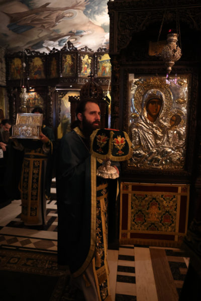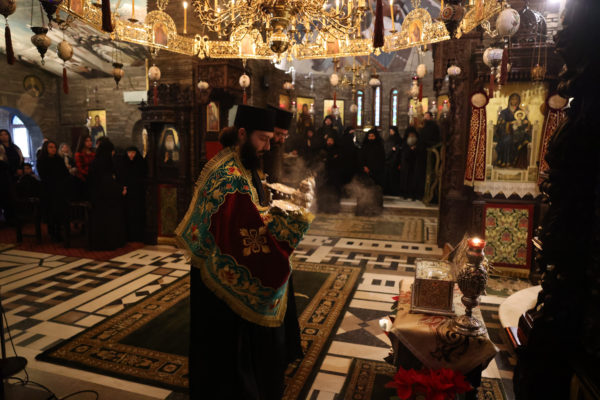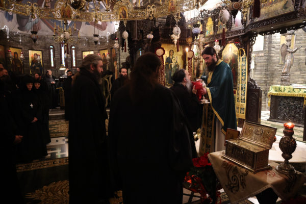 Την Τετάρτη το απόγευμα 1η Ιανουαρίου ο πανηγυρικός Εσπερινός τελέστηκε από τους πατέρες του Ησυχαστηρίου, καθώς και ανήμερα της εορτής όπου τέλεσαν την πανηγυρική Θεία Λειτουργία.