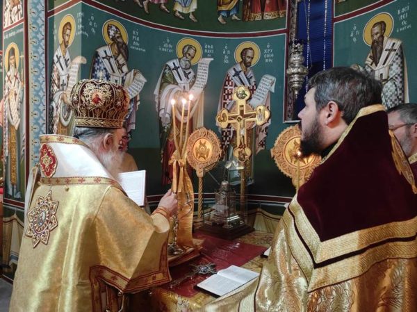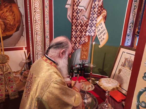 Ο Σεβασμιώτατος Μητροπολίτης Κορίνθου κ. Παύλος ετέλεσε Πανηγυρική Θεία Λειτουργία και μαζί του λειτούργησαν ο Πανοσ. Αρχιμανδρίτης π. Δαμασκηνός Γεννηματάς, Εφημέριος του Καθεδρικού Ιερού Ναού Αποστόλου Παύλου Κορίνθου, ο Ιερομόναχος π. Γεράσιμος Λάμπος, Εφημέριος Ιερού Ναού Αγίων Αναργύρων Καλαμακίου, ο Αιδεσ. Πρωτοπρεσβύτερος π. Γρηγόριος Θεοδώρου, συνταξιούχος Κληρικός της Ιεράς Μητροπόλεως μας και οι Διάκονοι π. Χρήστος Χίλιας και π. Σωτήριος Κουτσούρης.