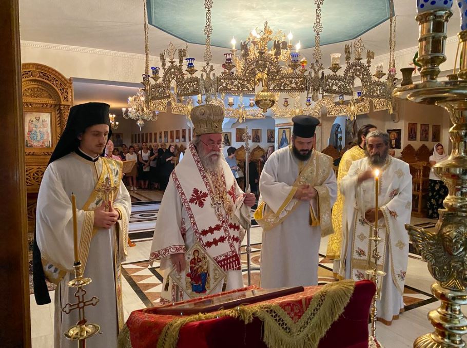Το πρωί της εορτής ο Σεβασμιώτατος Μητροπολίτης Ελευθερουπόλεως κ. Χρυσόστομος χοροστάτησε στην Ακολουθία του Όρθρου και τέλεσε την Θεία Λειτουργία στον εν λόγω Ιερό Ναό πλαισιωμένος υπό Ιερέων και Διακόνων, προεξάρχοντος του χορού των πρεσβυτέρων του Πρωτοσυγκέλλου της Μητροπόλεως Αρχιμανδρίτου Χρυσοστόμου Μπένου.
