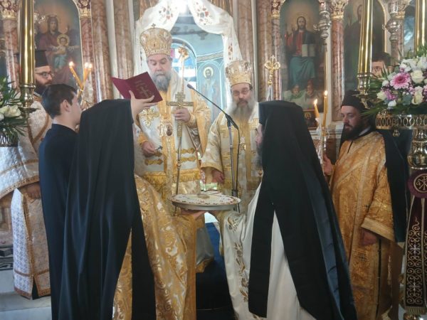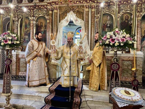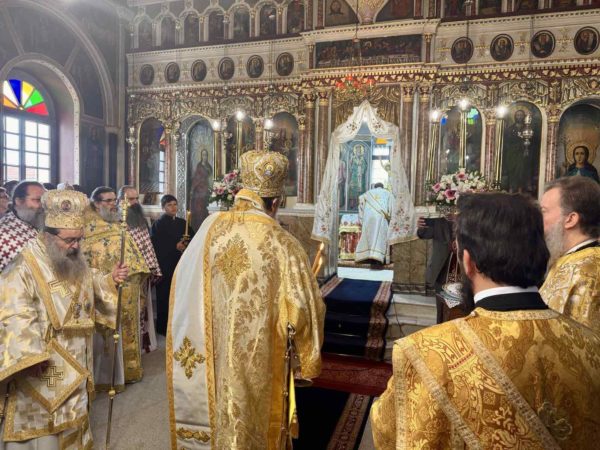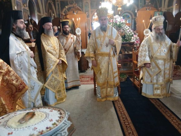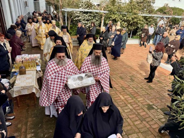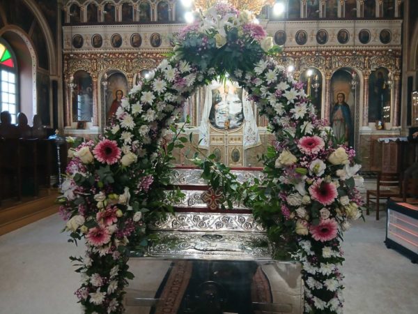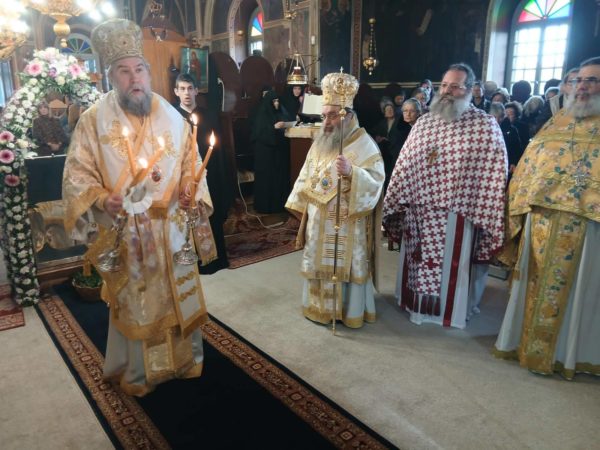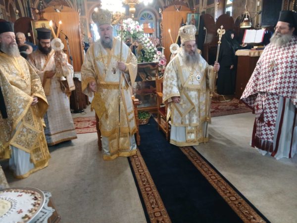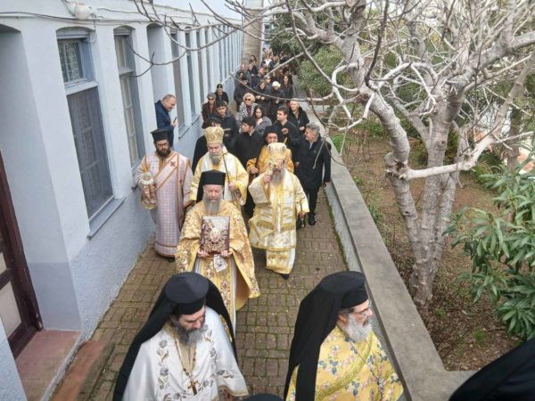Στις Ιερές Ακολουθίες, τις οποίες συμμετείχε πολυάριθμο πλήθος πιστών από την Χίο και από αλλού κάθε ηλικίας, ιερούργησαν ο Σεβασμιώτατος Μητροπολίτης Σερρών και Νιγρίτης κ. Θεολόγος και ο οικείος Ποιμενάρχης κ. Μάρκος με την παρουσία πολλών Κληρικών από τις Ιερές Μητροπόλεις Χίου, Ψαρών και Οινουσσών, Σερρών και Νιγρίτης, Δημητριάδος και Αλμυρού, Μαντινείας και Κυνουρίας, και Λαγκαδά, Λητής και Ρεντίνης ενώ έψαλλαν μοναχές της Ιεράς Μονής Πανοράματος Θεσσαλονίκης.