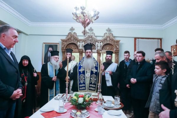 Ακολούθως ο Σεβασμιώτατος, αφού ευχαρίστησε τους τοπικούς άρχοντες και ιδιαίτερα την Περιφέρεια Στερεάς Ελλάδος για την ένταξη στο τεχνικό πρόγραμμά της της αναβάθμισης της οδικής πρόσβασης στη Μονή, ευλόγησε και την αγιοβασιλόπιτα της Μονής στο Μεγάλο Αρχονταρίκι παρουσία πλήθους προσκυνητών.