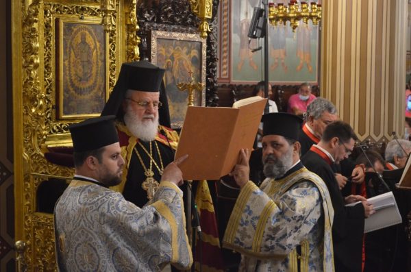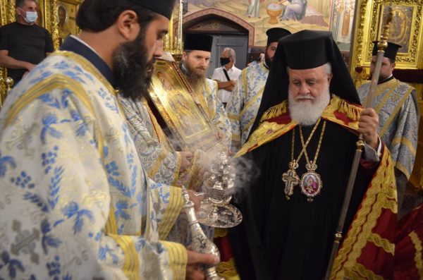 »Σήμερα, μέσα σ’ ένα κόσμο, που «διά το πληθυνθήναι την ανομίαν εψύγη η αγάπη των πολλών» (Ματθ. κδ’ 12), ήλθαμε εδώ, με γκρεμισμένες τις ελπίδες μας από τις αλλεπάλληλες απογοητεύσεις, για να στυλώσουμε το βλέμμα μας στη μορφή της Παναγίας και να την παρακαλέσουμε να προστατεύσει τον τόσο σκληρά δοκιμαζόμενο λαό μας από την αρπακτική της Τουρκίας μανία και από του covid-19 τη θανατηφόρα πανδημία, αλλά και να χαρίζει σ’ αυτόν σύνεση και ψυχραιμία, υπομονή και καρτερία και, προπαντός, ενότητα και ομοψυχία».