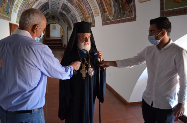 Μετά το τέλος της θείας Λειτουργίας ο Πανιερώτατος κλήθηκε από τα Μέσα Ενημέρωσης να αναφερθεί στο νόημα της ημέρας και να απευθύνει ευχές προς τον λαό.