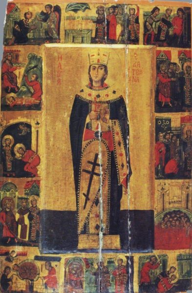 Η Αγία Αικατερίνη μαρτύρησε για τον Χριστό στις αρχές του 4ου αιώνα, στην Αλεξάνδρεια. Συνδέθηκε όμως άρρηκτα με το Όρος Σινά μετά την θαυμαστή εναπόθεση τού ιερού λειψάνου της στην ψηλότερη κορυφή τής Σιναϊτικής Χερσονήσου και την μεταφορά του αργότερα στην Μονή του Σινά.