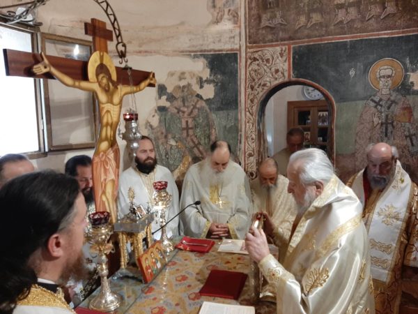 Την δε κυριώνυμο ημέρα της εορτής στο καθολικό της πανηγυρίζουσας ιεράς μονής, τελέσθηκε το Αρχιερατικό Συλλείτουργο προεξάρχοντος του Σεβασμιωτάτου Μητροπολίτου Καρυστίας και Σκύρου κ. Σεραφείμ, και συνιερουργούντος του Σεβασμιωτάτου Μητροπολίτου Ειρηνουπόλεως κ. Νικάνδρου.