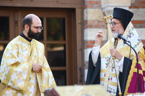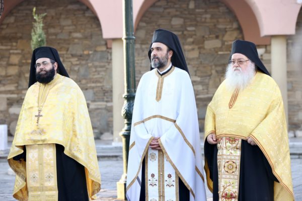 Στην ακολουθία του εσπερινού χοροστάτησε ο Θεοφιλέστατος Επίσκοπος Αμορίου και Καθηγούμενος της Ιεράς Μονής κ. Νικηφόρος πλαισιούμενος από ιερείς και διακόνους.