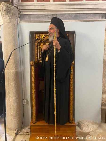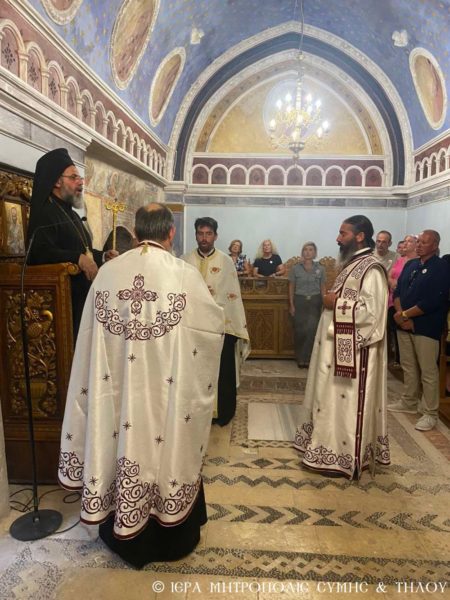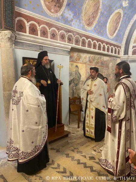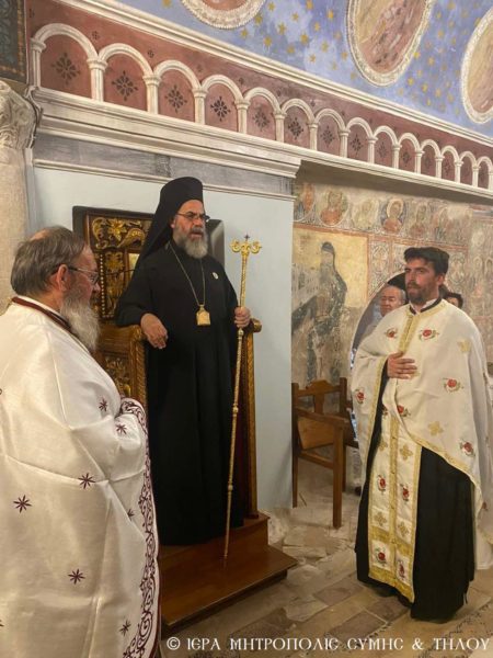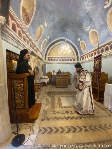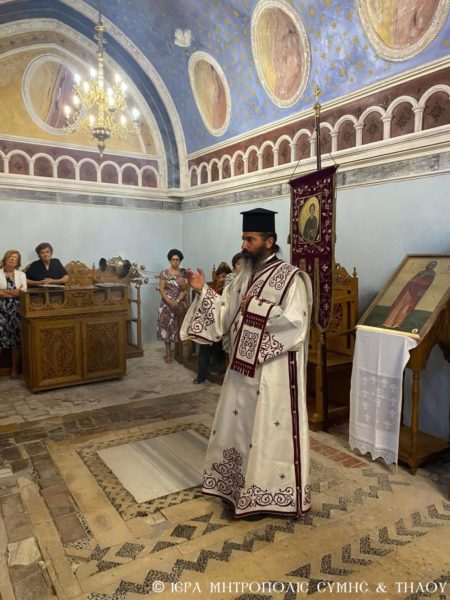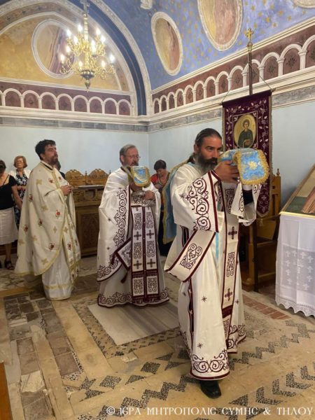 Το εσπέρας της παραμονής, Τρίτης 26ης Ιουλίου 2022, ο Σεβασμιώτατος Μητροπολίτης Σύμης κ. Χρυσόστομος, χοροστάτησε του Μεγάλου πανηγυρικού Εσπερινού, συμπαραστατούμενος από τον Πανοσιολ. Αρχιμανδρίτη π. Αντώνιο Πατρό, Ηγούμενο της Ι. Μονής Πανορμίτου Σύμης, τον Εφημέριο του Μεγάλου Χωρίου Τήλου π. Σπυρίδωνα Γκαγκιούζη και τον Διάκονο της Ιεράς Μητροπόλεώς μας π. Γεώργιο Κακακιό, το δε ι. αναλόγιο κατά την Πανήγυρη διακόνησε γλυκυφθόγγως ο κ. Παναγιώτης Μανουσάκης Πρωτοψάλτης του Ι. Μητροπολιτικού Ναού Εισοδίων Θεοτόκου Ρόδου.