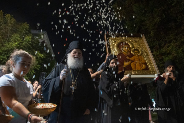 “Σε τούτους τους δύσκολους καιρούς που ζούμε η χάρις της Υπεραγίας Θεοτόκου αποτελεί για όλους εμάς πηγή μεγάλων ευεργετιών, χαράς και παρηγορίας” σημείωσε ο οικείος ποιμενάρχης.