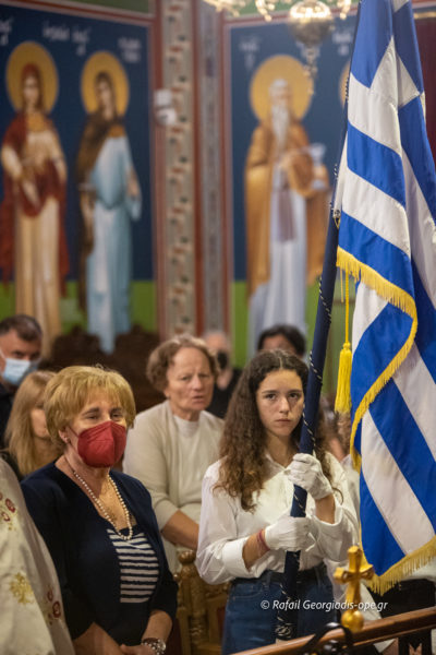 Η φιλαρμονική μπάντα του Δήμου παιάνισε χαρμόσυνους ύμνους μέχρι την αυλή του Μητροπολιτικού Ναού όπου και εκεί όλοι μαζί μπροστά στο θεομητορικό εικόνισμα έγινε η ανάκρουση του Εθνικού Ύμνου.