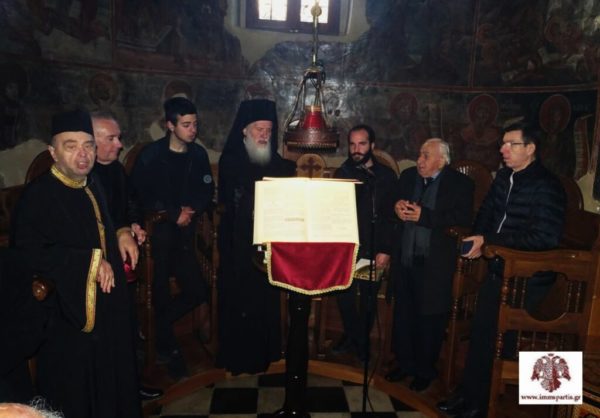 Πριν την λιτάνευση των ιερών εικόνων πέριξ του Καθολικού της Μονής, τελέσθηκε Τρισάγιο για τον καταγόμενο από τις Βελιές Λακωνίας μακαριστό Μητροπολίτη Ελαίας κυρό Θεοδώρητο, που απεβίωσε την Τετάρτη 5 Μαρτίου και ο οποίος διετέλεσε Ηγούμενος της Ι.Μ. Αγίων Τεσσαράκοντα από το 1968 έως το 1976.
