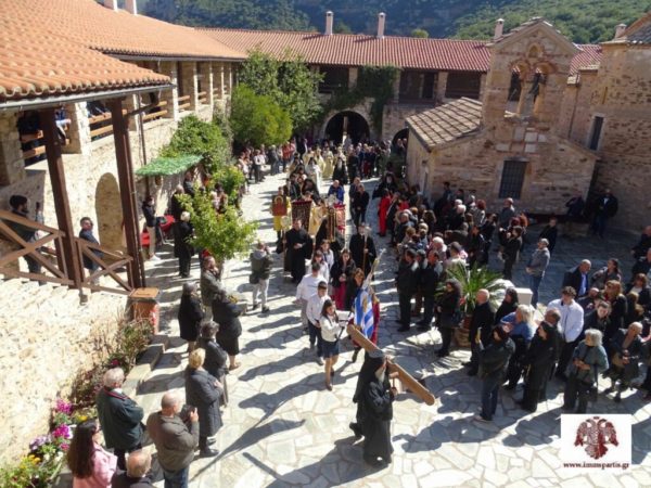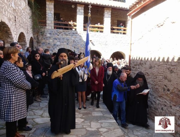 Μετά το πέρας της λιτανείας και πριν την Απόλυση, ο Σεβασμιώτατος Μητροπολίτης ευχήθηκε στον Θεοφιλέστατο Επίσκοπο Λακεδαιμονίας για τα Ονομαστήριά του, ενώ συνεχάρη την αδελφότητα της Μονής, με προεξάρχοντα τον Ηγούμενο π. Εφραίμ, και όλους όσοι συνέδραμαν ώστε ο εορτασμός να είναι καθ’ όλα άψογος.