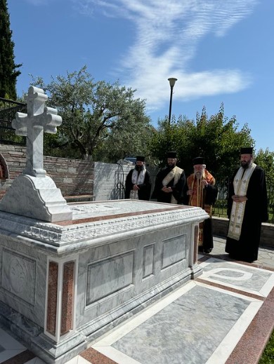Μετά το τέλος της Θείας Λειτουργίας και τις ευχές του Σεβασμιωτάτου προς τις Μοναχές και τους ευλαβείς προσκυνητές, ο Σεβασμιώτατος Μητροπολίτης Ελευθερουπόλεως κ. Χρυσόστομος τέλεσε τρισάγιο στο τάφο του Πνευματικού και κτήτορος της Ιεράς Μονής Μακαριστού π. Φιλίππου, της αειμνήστου καθηγουμένης της Ιεράς Μονής Λυδίας Μοναχής και της Μοναχής Μακρίνης.