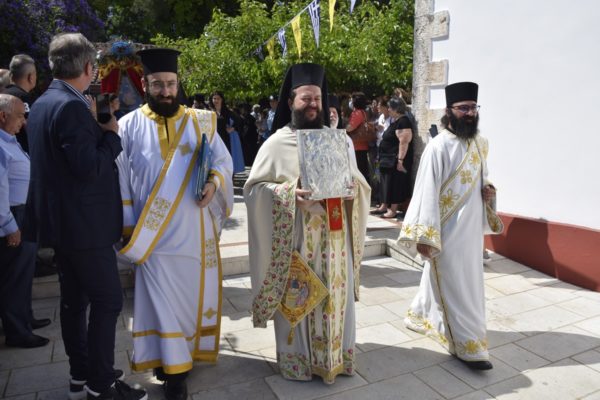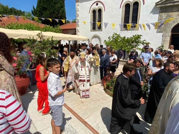 Το πρωί της Δευτέρας του Αγίου Πνεύματος, 5 Ιουνίου 2023, εορτή της Συνάξεως της Υπεραγίας Θεοτόκου, κορυφώθηκαν οι λατρευτικές εκδηλώσεις στην εορτάζουσα Ιερά Μονή Παναγίας Φανερωμένης. Αρχικά εψάλη η Ακολουθία του Όρθρου χοροστατούντος του Σεβασμιωτάτου Μητροπολίτου Νέας Ιωνίας, Φιλαδελφείας, Ηρακλείου και Χαλκηδόνος κ. Γαβριήλ και στη συνέχεια τελέσθηκε λαμπρό Πολυαρχιερατικό Συλλείτουργο, προεξάρχοντος του Σεβασμιωτάτου Μητροπολίτου Χίου, Ψαρών και Οινουσσών κ. Μάρκου, συλλειτουργούντων των Σεβασμιωτάτων Μητροπολιτών Νέας Ιωνίας, Φιλαδελφείας, Ηρακλείου και Χαλκηδόνος κ. Γαβριήλ και Λευκάδος και Ιθάκης κ. Θεοφίλου με τη συμμετοχή πλειάδας κληρικών.