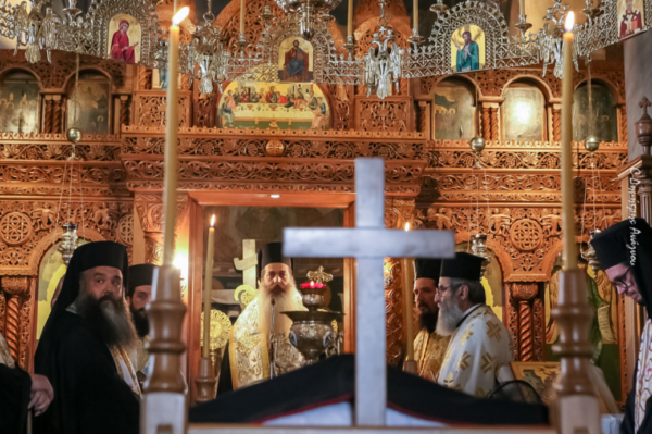 Το προηγούμενο βράδυ τελέσθηκε Ιερά ολονυκτία ενώπιον του σκηνώματος της μακαριστής μοναχής Θεοδώρας, όπου εψάλη η νεκρώσιμος ακολουθία εις μοναχούς και στην οποία αργά τα μεσάνυκτα προσήλθε συμπροσευχόμενος και ο Σεβασμιώτατος Μητροπολίτης κ. Συμεών.